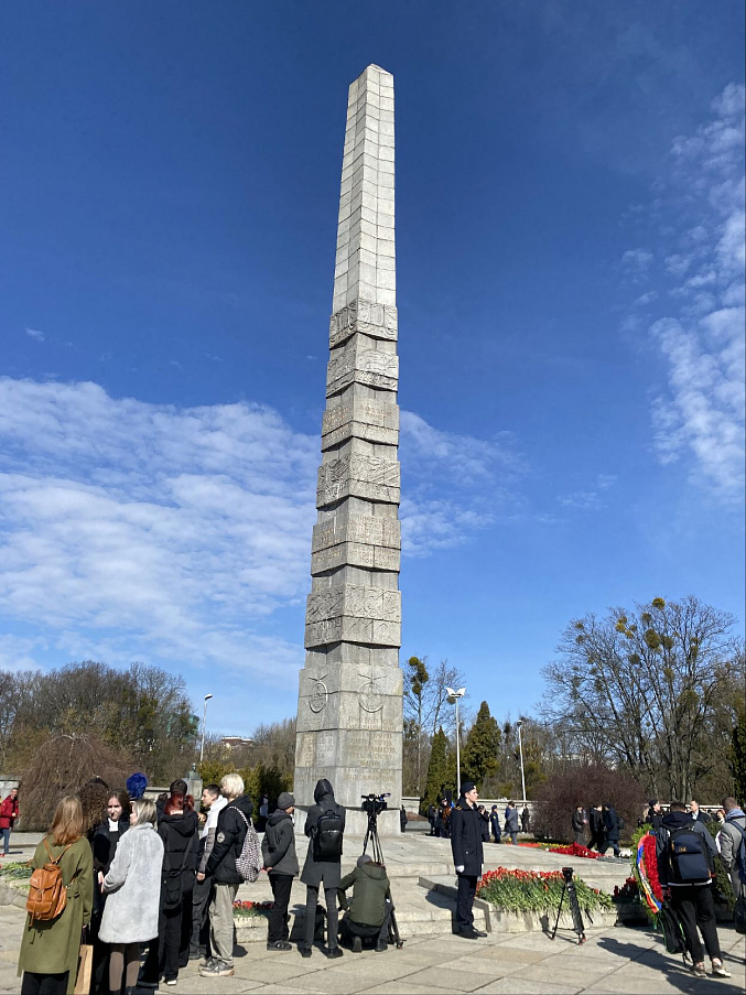 Сегодня представители Молодежного совета Департамента по недропользованию по Северо-Западному федеральному округу на континентальном шельфе и в Мировом океане в г. Калининграде приняли участие в церемонии возложения цветов к братской могиле воинов 11-й Гвардейской армии, погибших при штурме города-крепости Кёнигсберг в апреле 1945 года.